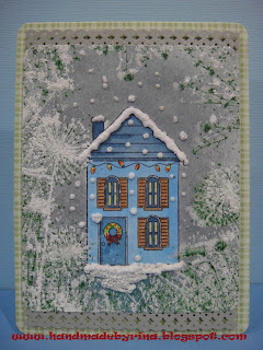 I used my Favorite Stamp: Dandelion Frame-CG153 and the other stamp: Sending Holiday Cheer-CL464 ( All Stamps from Hero Arts )Ink Pads: White-VersaColor and Tuxedo Black-Momento